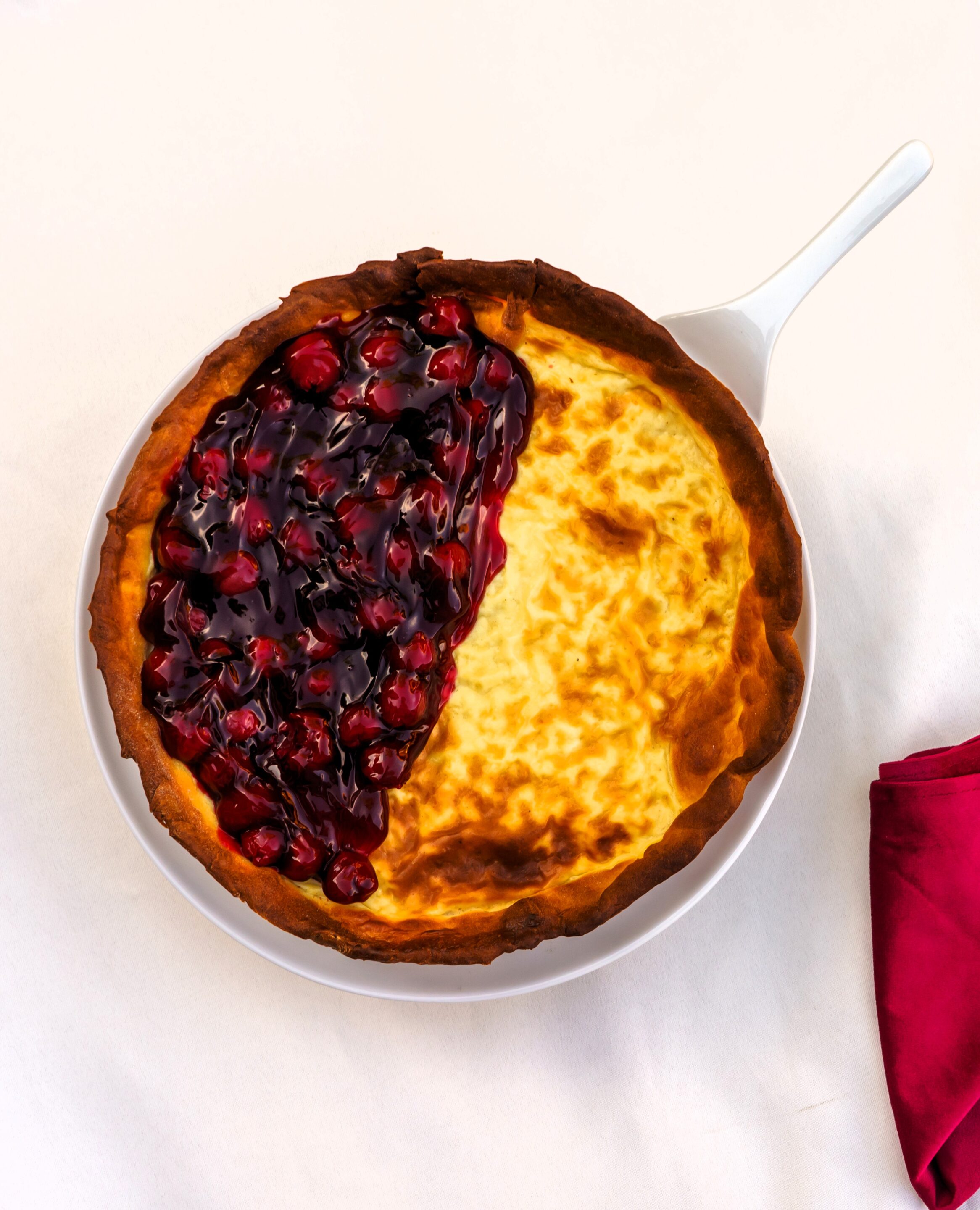 Haal na het bakken de vlaai uit de oven en laat minimaal een half uur afkoelen in de vorm. De banketbakkersroom in de vlaai is nog een beetje vloeibaar als de vlaai net uit de oven komt, daarom kun je beter even wachten met de vlaai uit de vorm halen.